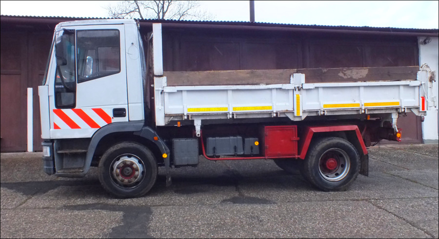 Nákladní automobil s nosností 6,5 tuny pro převoz stavebních materiálů s přívěsem.